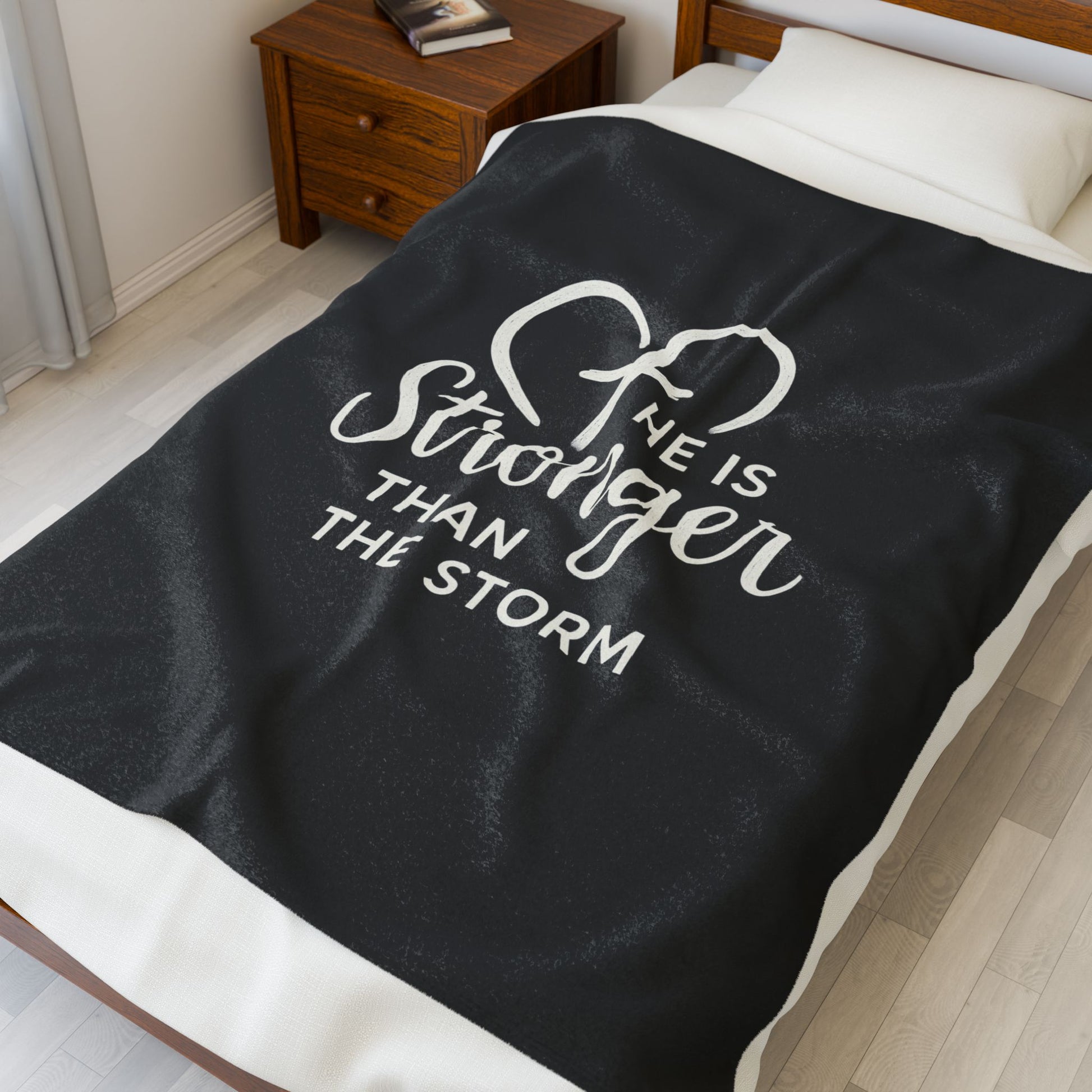 Inspirational Velveteen Plush Blanket - 'He is Stronger Than the Storm', Cozy Gift for Comfort and Encouragement, Perfect for Home [...]